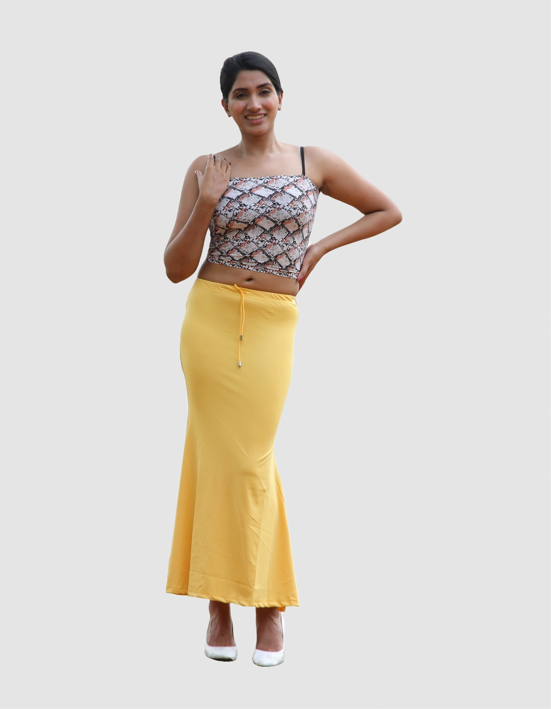 Luxuriously Smooth and Flexible Designer Saree Shaper |  Crafted to Gently Accentuate Your Natural Contours | Elegantly Flowing Mermaid Style Lower Portion with a Slit | Distinctive Broad Waistband featuring a Customizable Drawstring